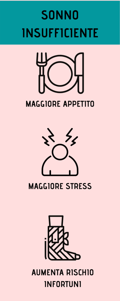 Fino ad arrivare ad una correlazione diretta in diversi studi tra insufficienza di ore di sonno ed infortuni: sappi che se dormi poco è più alta la probabilità che tu ti possa fare male durante l’attività sportiva!
