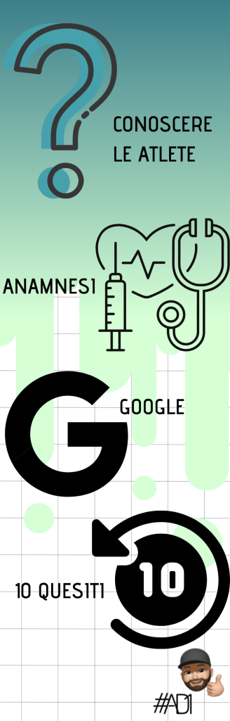 Avere i contatti di ogni atleta è una cosa che tutti fanno in via preventiva, ma la cosa che voglio fare è sviluppare un vero e proprio questionario di anamnesi con cui chiedere quelle che per me sono le priorità, una sorta di sondaggio da inviare dopo essermi presentato. Vorrei creare un modulo con Google Doc, che non solo si presenta molto bene ed in maniera molto ben organizzata, ma raccoglie i dati in automatico senza dover sollecitare nessuno a dover inviare mail o quant’altro.